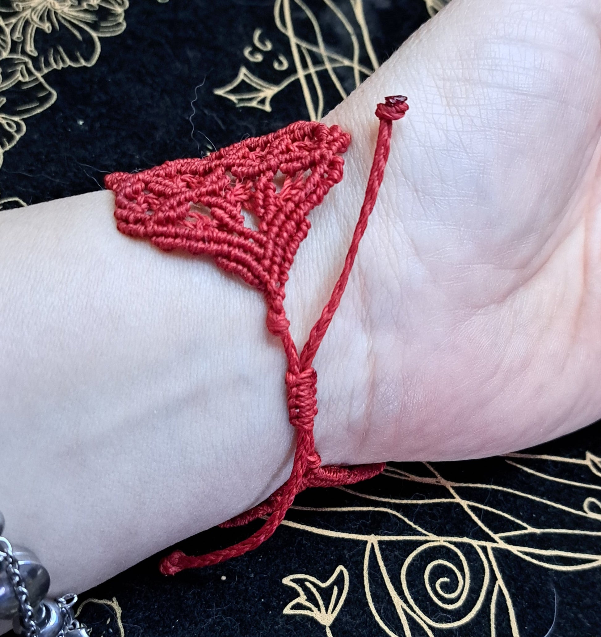 Bracelet réalisé en fil ciré Linahsita rouge foncé de 0.75mm. Taille ajustable.