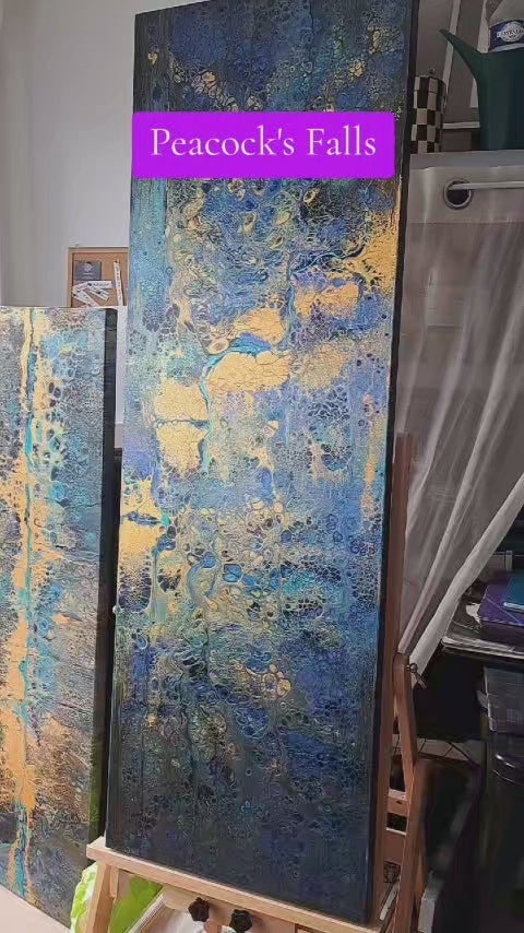 Peinture acrylique métallique et fines paillettes sur châssis en bois entoilé 3D de 50x150x3cm